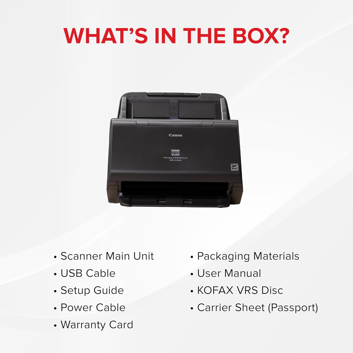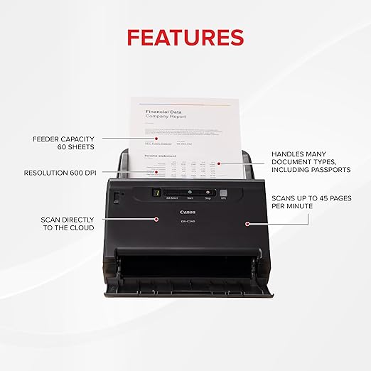 The DR-C240 is a high-speed scanning solution with a feeder which can hold 60 sheet of paper. This powerful scanner can load different sizes and process various type of documents, including thin paper, postcards, and even passports. It is suitable for scanning a huge number of documents quickly and easily.